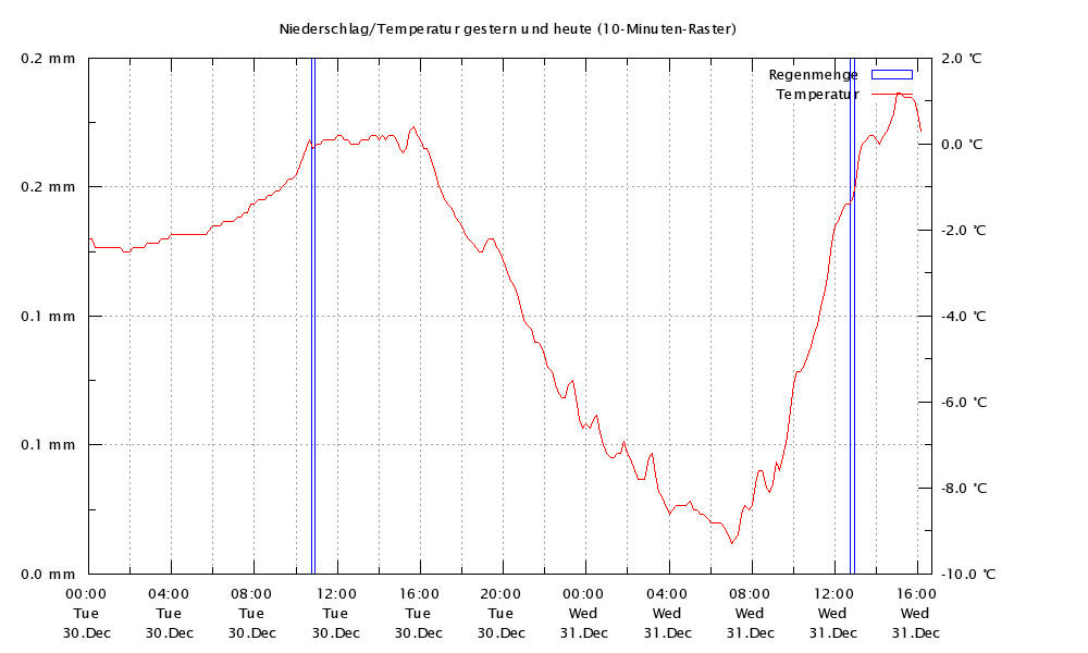 Niederschlag gestern und heute (in 10-minütigen Meßintervallen)