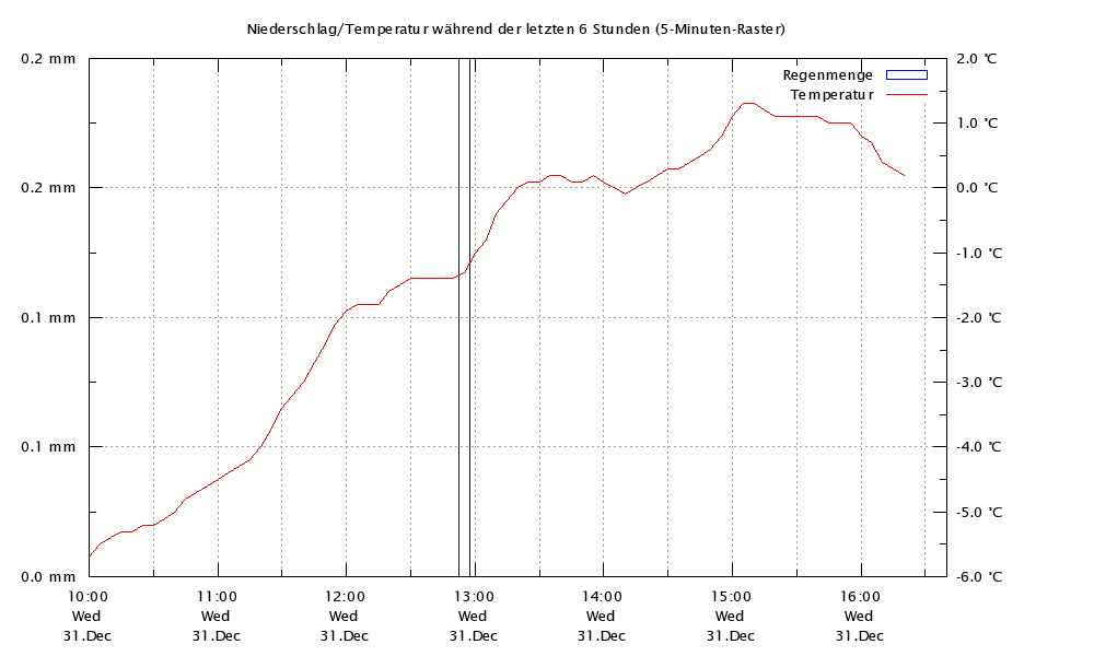 Niederschlag während der letzten 6 Stunden (in 5-minütigen Meßintervallen)