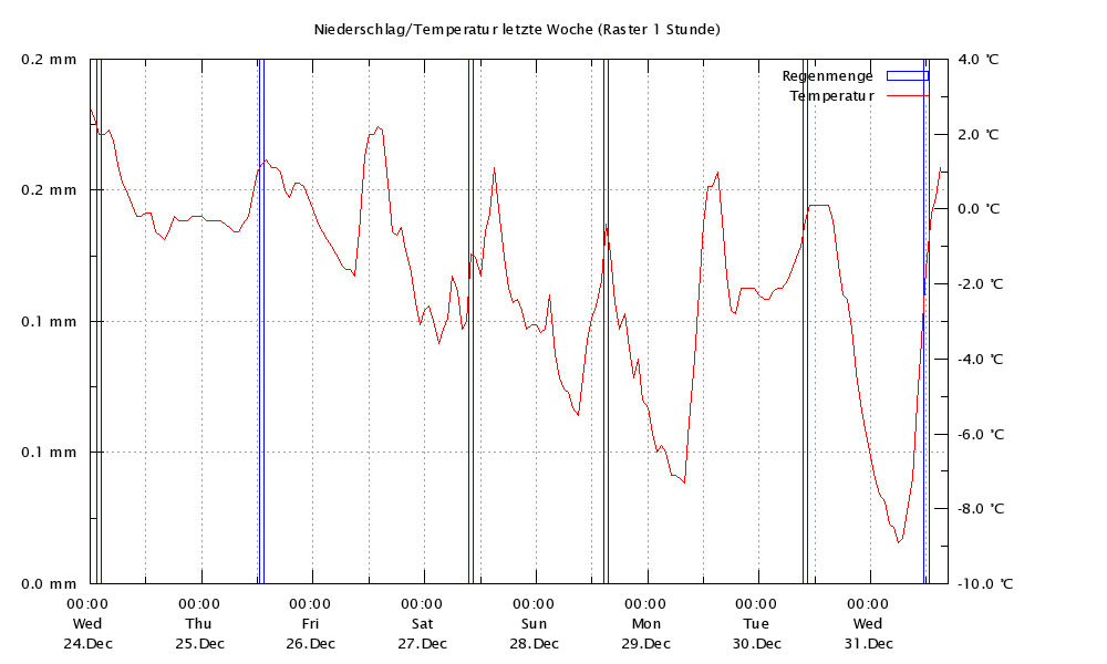 Niederschlag in den letzten 7 Tagen (in 1-stündigen Meßintervallen)